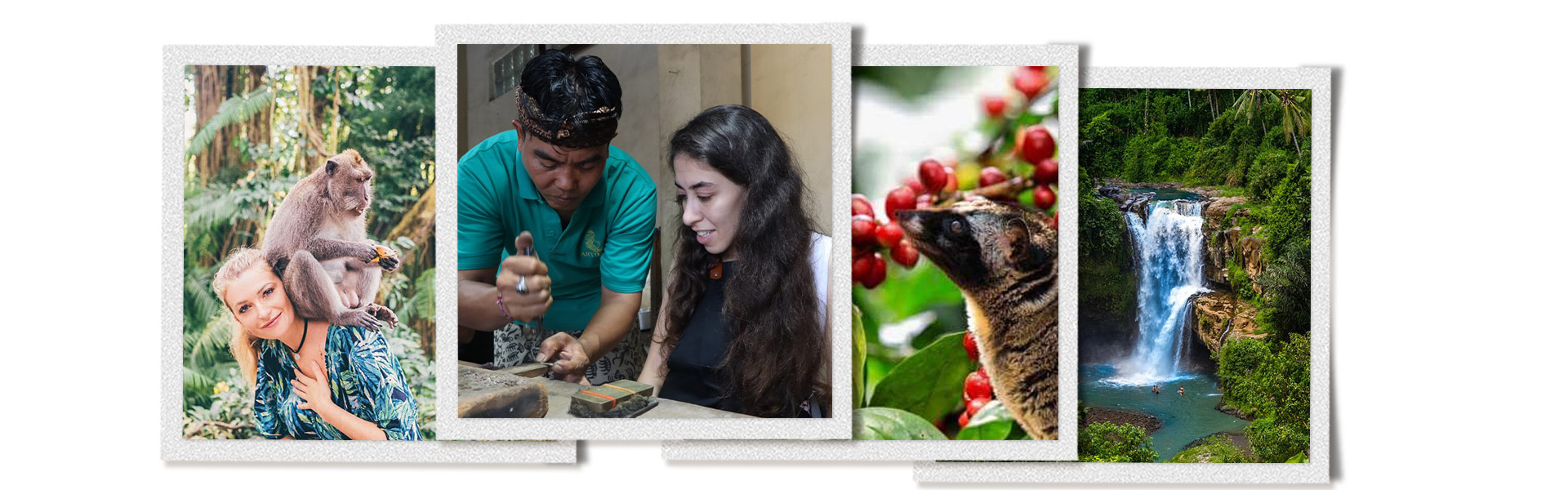 or known with popular name Bali Agrotourism, is a place to see various Tropical plantations such as coffee robusta, pineapple, Balinese snake fruite(salak), plain Balinese potatoes, fruit stars, cacao, jack fruit, durian tree and many more, experience to see how to make Balinese coffee in very traditional ways, and taste the fresh of Balinese coffee or ginger tea with green view river valley and also they sell variety of theirs original Balinese coffee products, herb oil and etc and see the civet cat the most expensive coffee maker, wellknown as Luwak, its produce “Coffee Luwak“, and this coffee luwak become the famous coffee with complete taste.